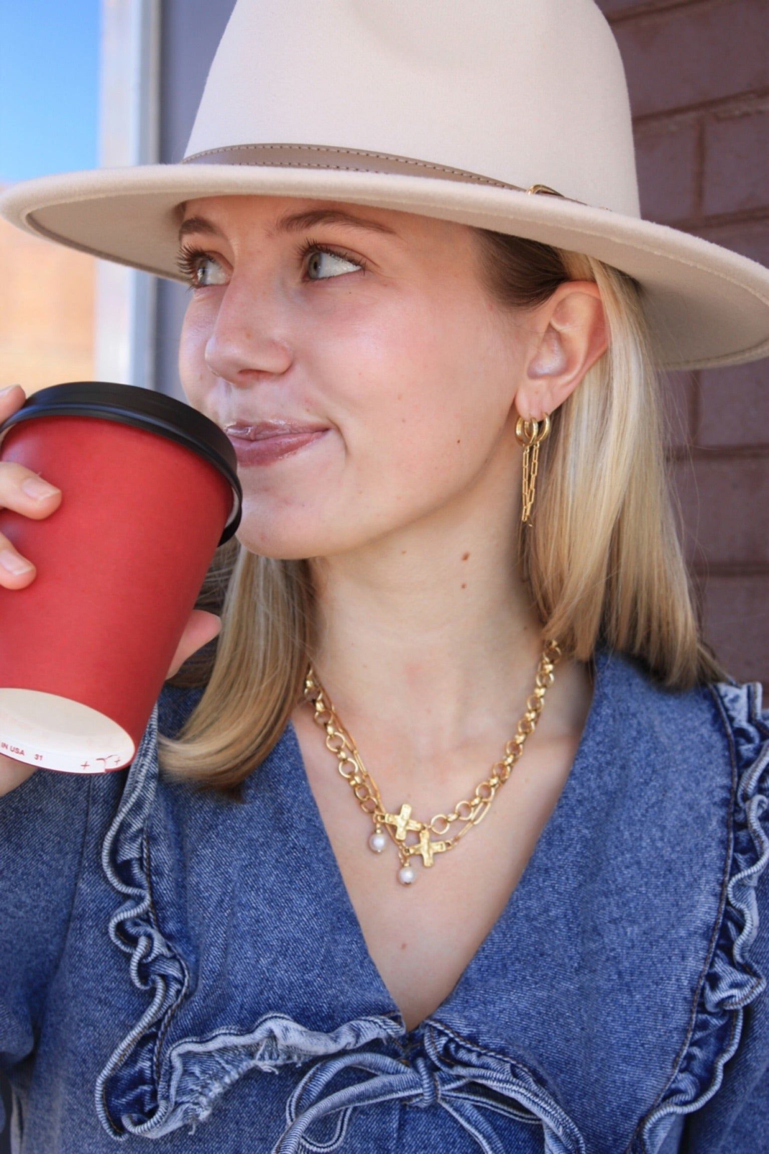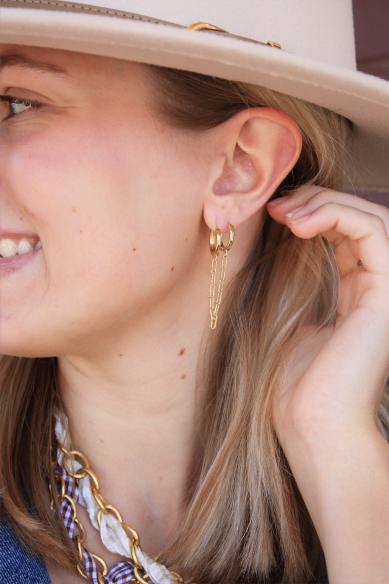Double Duster Hoop Earrings! Made with high quality, gold filled hoops and chain.