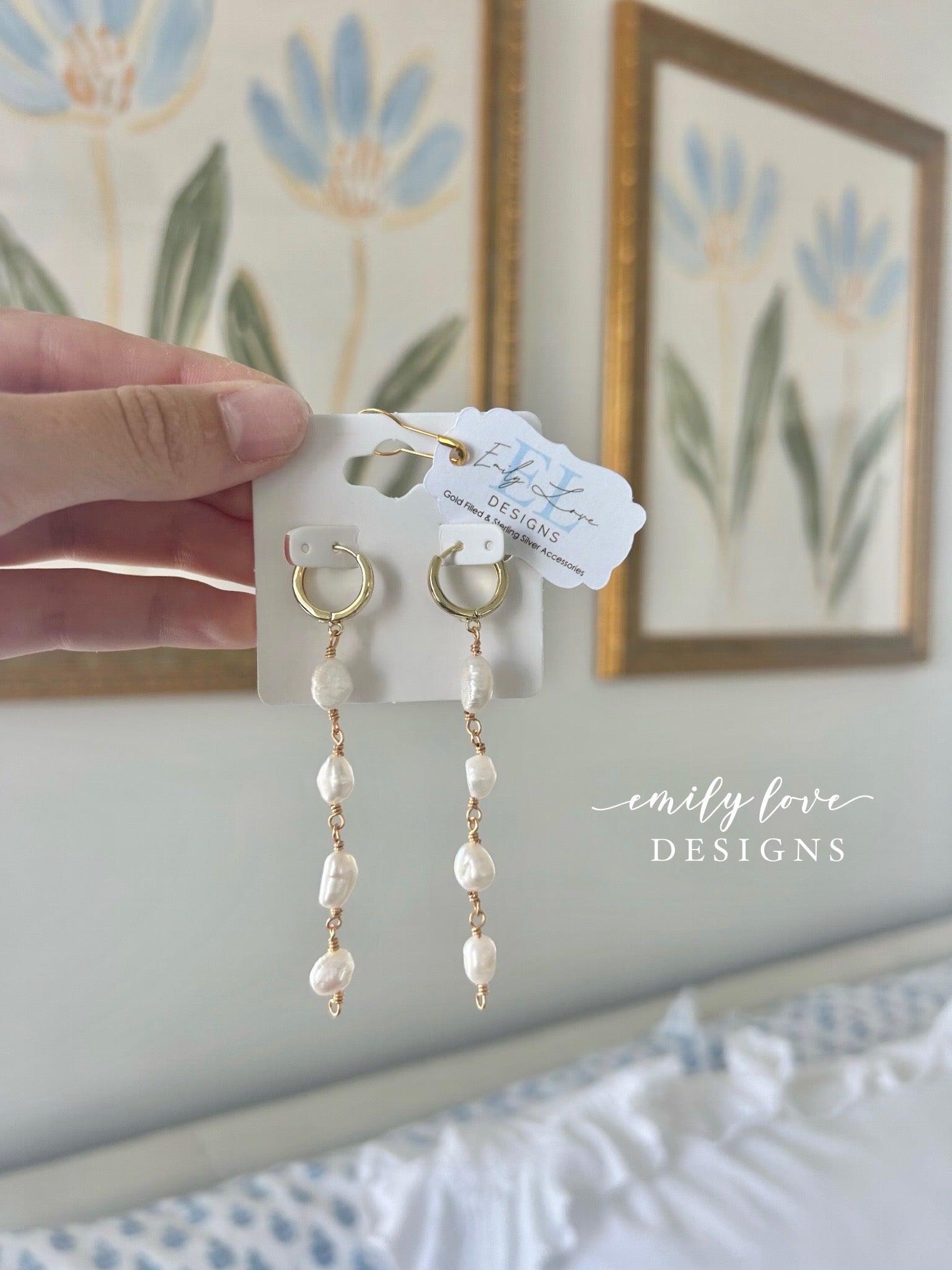 Pearl duster earrings! The hoop is gold filled, however, the chain gold plated, so avoid wearing in water or exposing to chemicals!